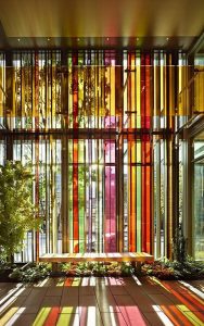 Особенно актуально, если сторона солнечная, то оклейка пленкой витражных расцветок, наполнит офис душевным теплом, хорошим настроением, и благодаря солнцезащитной функции, витражная пленка не даст сильно нагреваться предметам, внутри помещения.