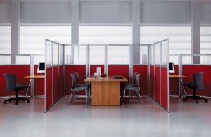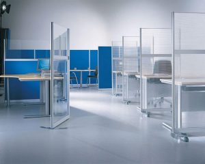 Как правило в открытых офисах, когда используется много стекла, все же необходимо зонирование. Выделить различные зоны, чайную комнату, переговорную, зону встречи клиента и тд и тп.